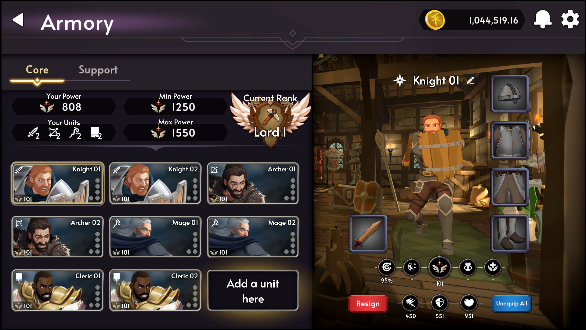 Keep track of the unit type composition youβve placed so far β Knights, Archers, Mages, and Clerics β and aim to create the most versatile formation possible.