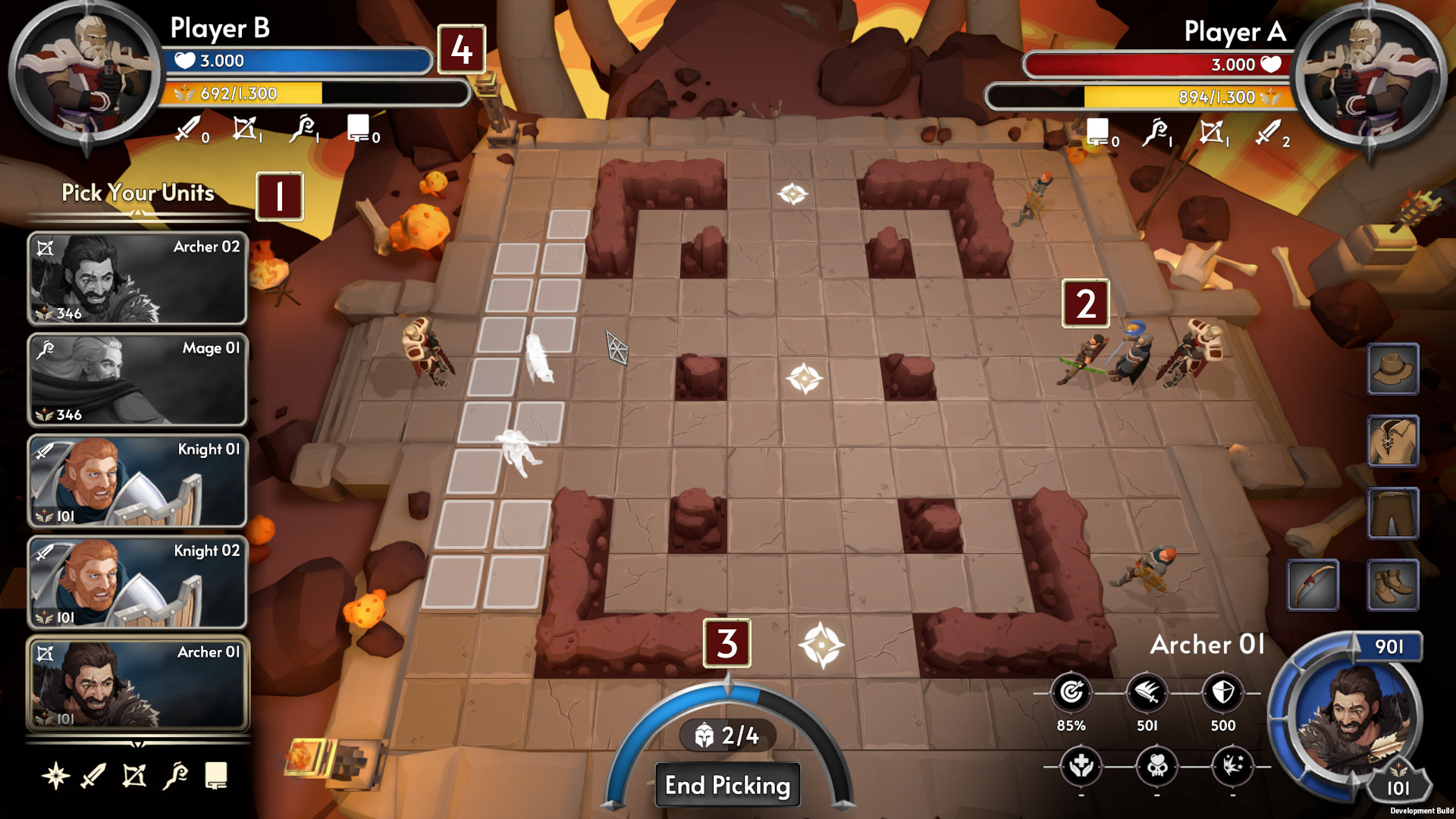 The Picking Phase is turn-based, just like the gameplay that follows. During this phase, you'll be able to see your opponent's confirmed formation and adjust your strategy accordingly.